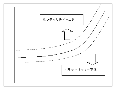 Volatility)ではない。株価や為替レートが過去の経緯とは無関係に決定されるのと同じように、ボラティリティー(予想変動率)はヒストリカル・ボラティリティーとは関係なく決定される(罫線分析など、将来価格が予想可能であるとする理論も存在する。テクニカル・アナリシスの是非はここでは論じないが、効率的市場において相場予測が無意味であることは、野口 悠紀雄『金融工学、こんなに面白い』の第1章(pp12-40)を丸々使って記述されているので、参照されたい。)。