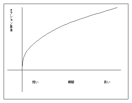さらに、オプション価格と、時間の関係は、図8に示されるように、いわゆる2次曲線を描く。オプションの残存期間が長い場合には、タイム・ディケイは少ないが、残存期間が短くなると、オプションの価値は急激に減少する。