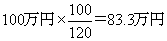 現在価格100万円の株において、等距離にあるプラス・マイナス20%の価格とは、120万円と80万円ではなく、