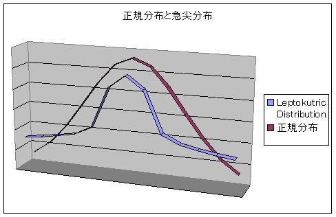 スマイルは、もし分布状態が図補6に見られるように、正規分布より中心付近ではより集中して尖った分布を示している一方、中心から離れると正規分布を上回る分布を示す急尖分布(Leptokurtic