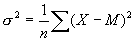 で表される(Xは変量、Mは平均、nは変量の個数)。また、分散の平方根のことを標準偏差と呼ぶ。