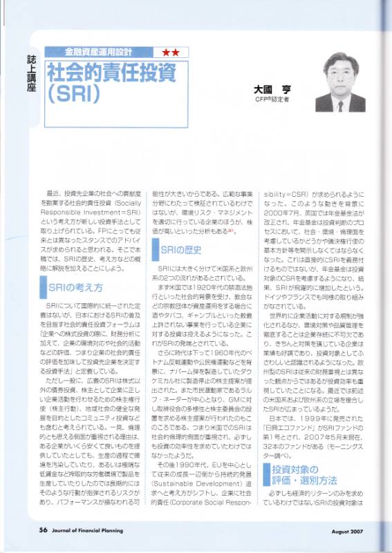 誌上講座「社会的責任投資